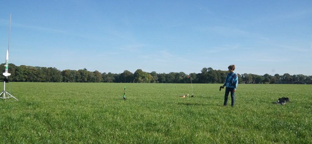 Vanwege de wind op zaterdag uitgesteld, niet naar de volgende zaterdag, maar naar zondag. Dal leek wat de korte- en lange termijn weersverwachting het meest verstandig. Gelukkig is het een prachtige dag geworden, weinig wind, milde temperatuur, en de hele dag zon ! Een gezellige groep deelnemers, en lanceringen van allerlei soorten raketten.